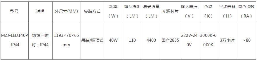 MZJ-LED140P-IP44 詳細燈具的配光曲線圖