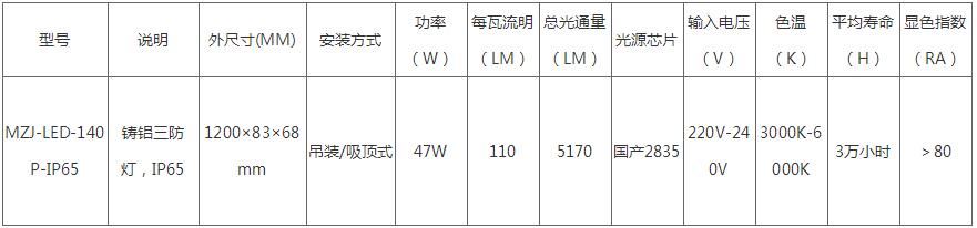MZJ-LED-140P-IP65 詳細燈具的配光曲線圖